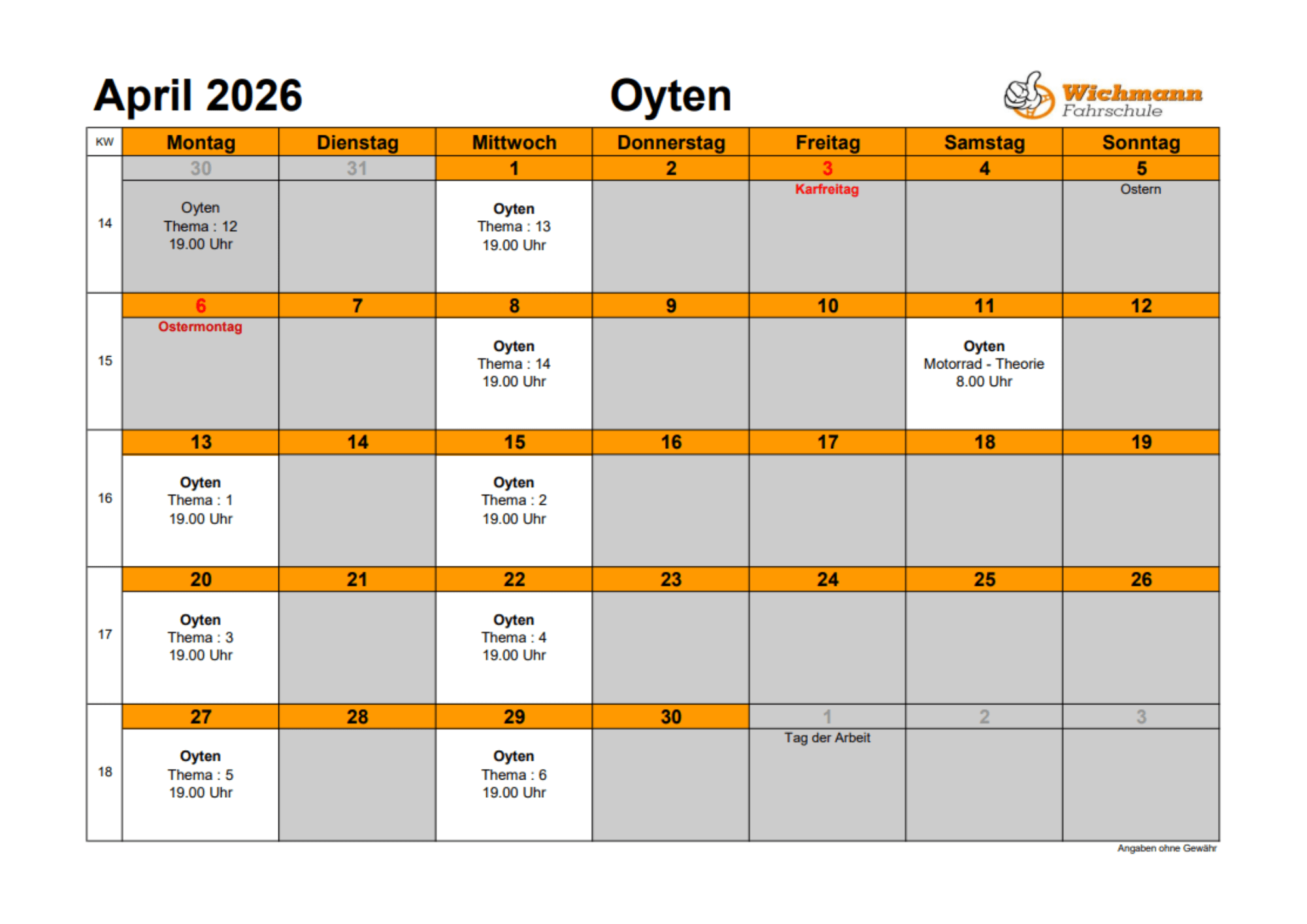 Ihr könnt Eure Führerscheinausbildung selbstverständlich auch JEDERZEIT starten.