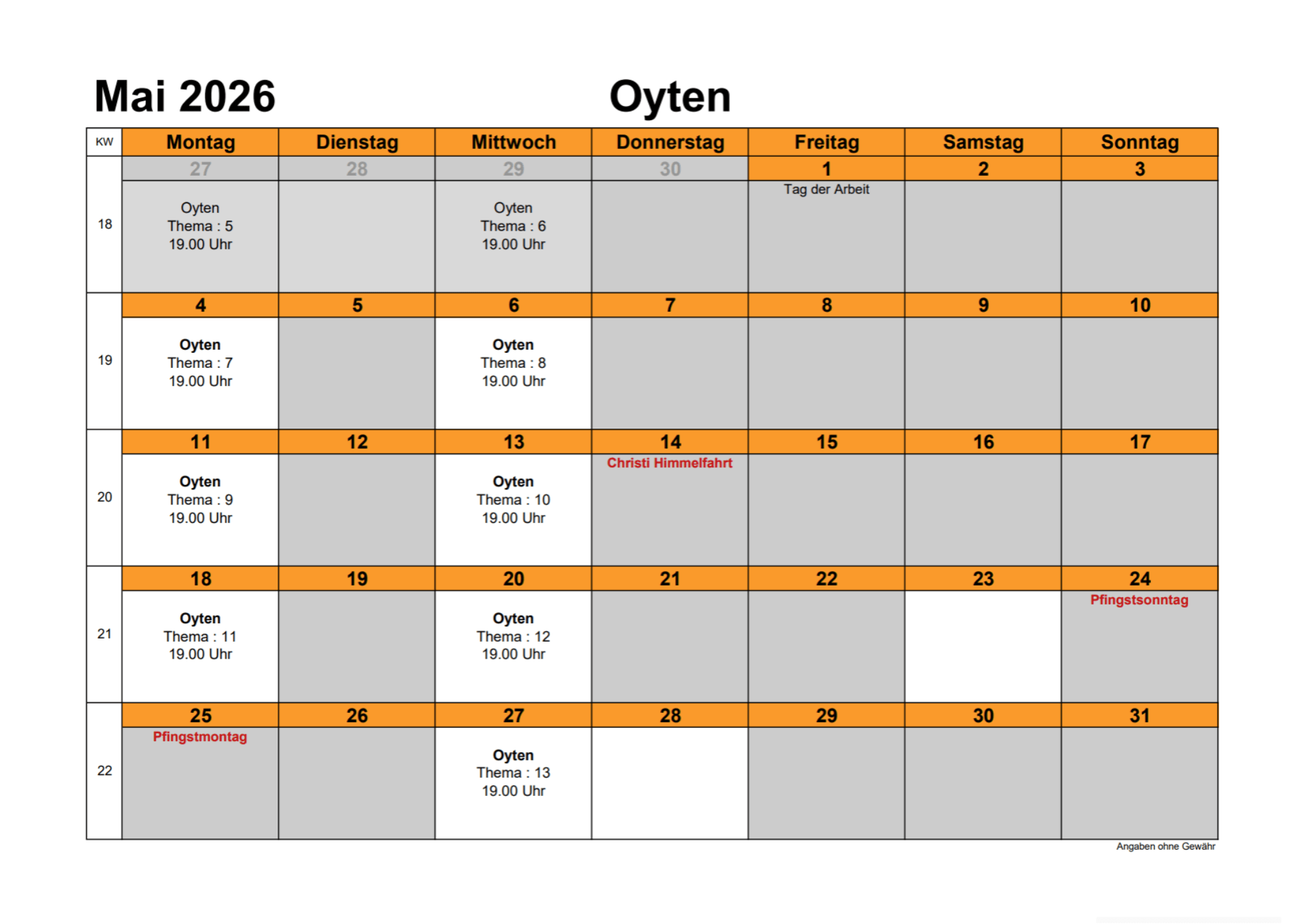 Mo.: 19:00 – 20:30 Uhr